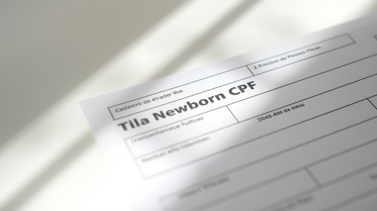 Бланк или карточка CPF для новорождённого, чистая поверхность стола, дневное освещение, раздел «CPF