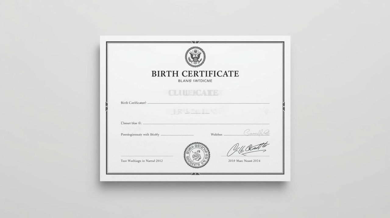 Образец Certidão de Nascimento с печатью, нейтральный фон, персональные данные отсутствуют.